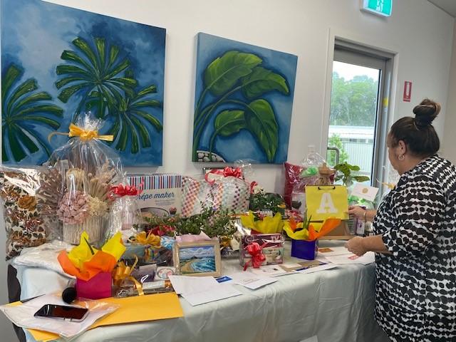 Pictured: One of the many prize tables at the Morning Tea Celebration Fundraiser for Cancer Care